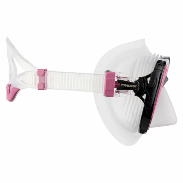 Una membrana brevettata che circonda la tasca interna del naso ed entrambe le tasche interne degli occhi agisce come una barriera e trattiene l’umiditร  che fuoriesce involontariamente dal naso del subacqueo quando respira con la bocca. il risultato รจ che non solo l’umiditร  viene incanalata lontano dalle lenti, evitando cosรฌ l’appannamento delle stesse, ma riduce anche la necessitร  di compensare la pressione. per migliorare ulteriormente l’effetto antiappannamento, cressi suggerisce, le prime volte che si usa la maschera subacquea, di spruzzare un po’ di soluzione antiappannamento o di applicare un po’ di saliva all’interno delle lenti e poi di sciacquarle con acqua.